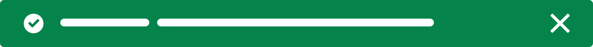 All Toasts need to have a close “x” icon button so that users can dismiss them. All Toasts should persist (be sticky) until the user closes it except for the Success Toast without a link. Success Toasts can auto-dismiss after 3-5 seconds